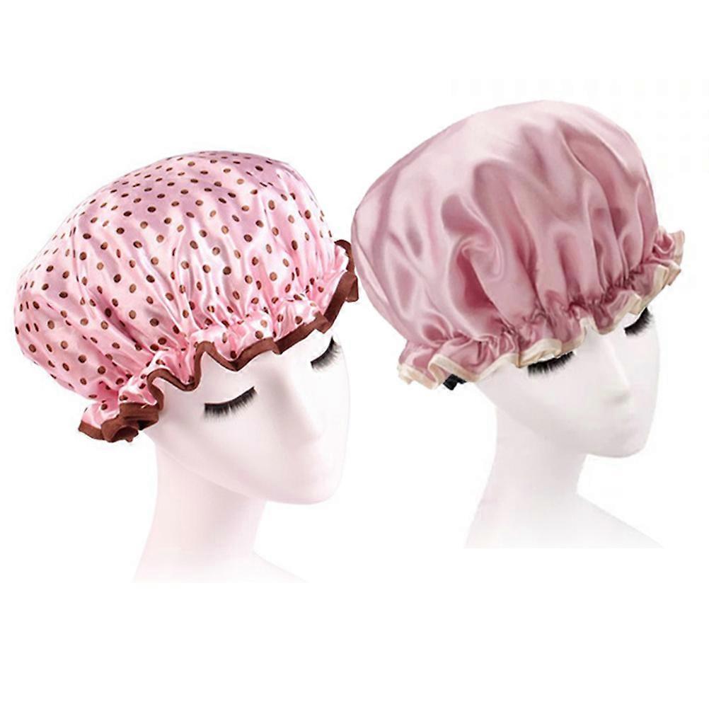 Bath Caps Dots Pattern Waterproof Bathing Hat Elastic Shower for Women Men Wine Red Dots 2Pcs