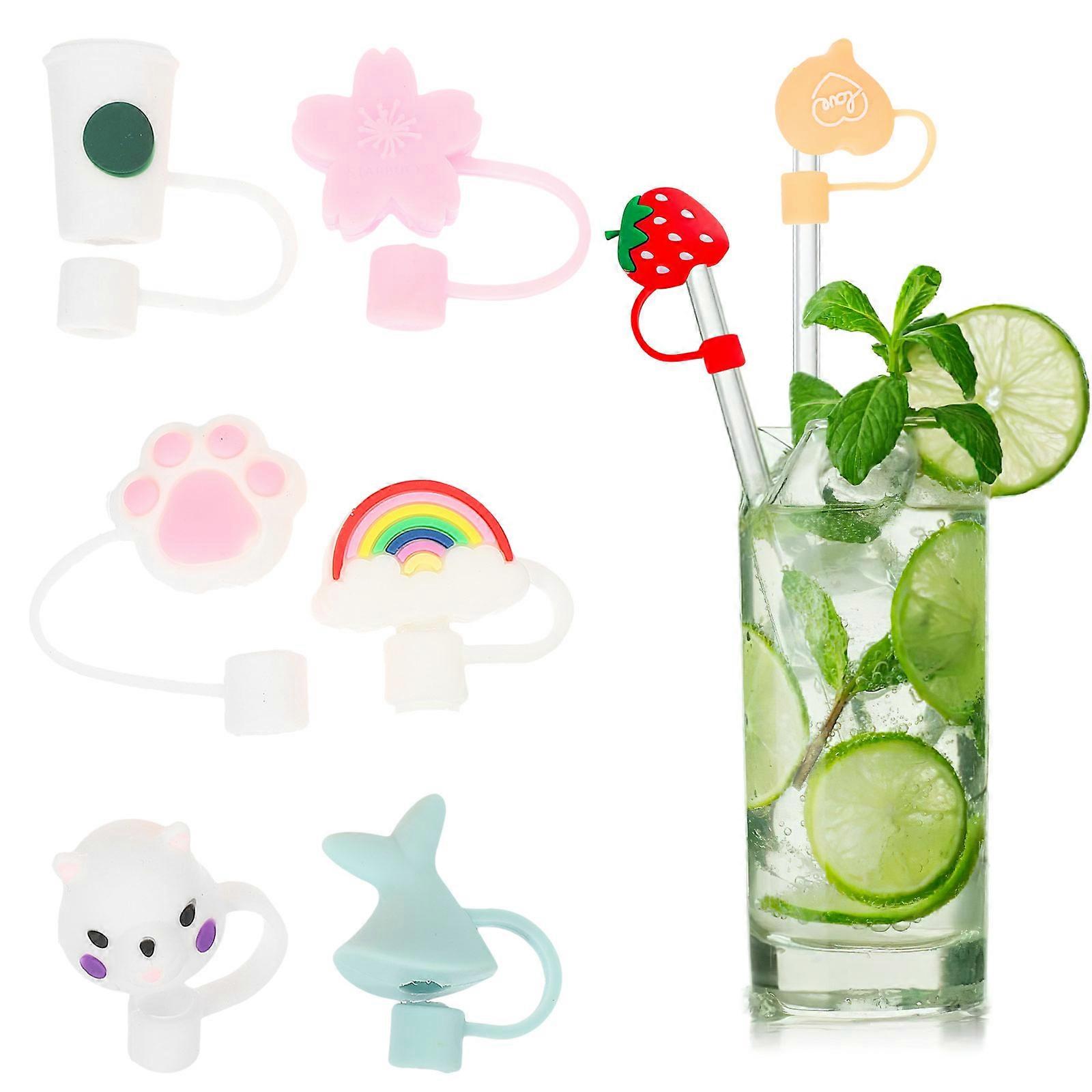 Cartoon Straw Caps Dustproof Protective Drinking Straw Protectors Assorted .5X2.5X1CM 8Pcs