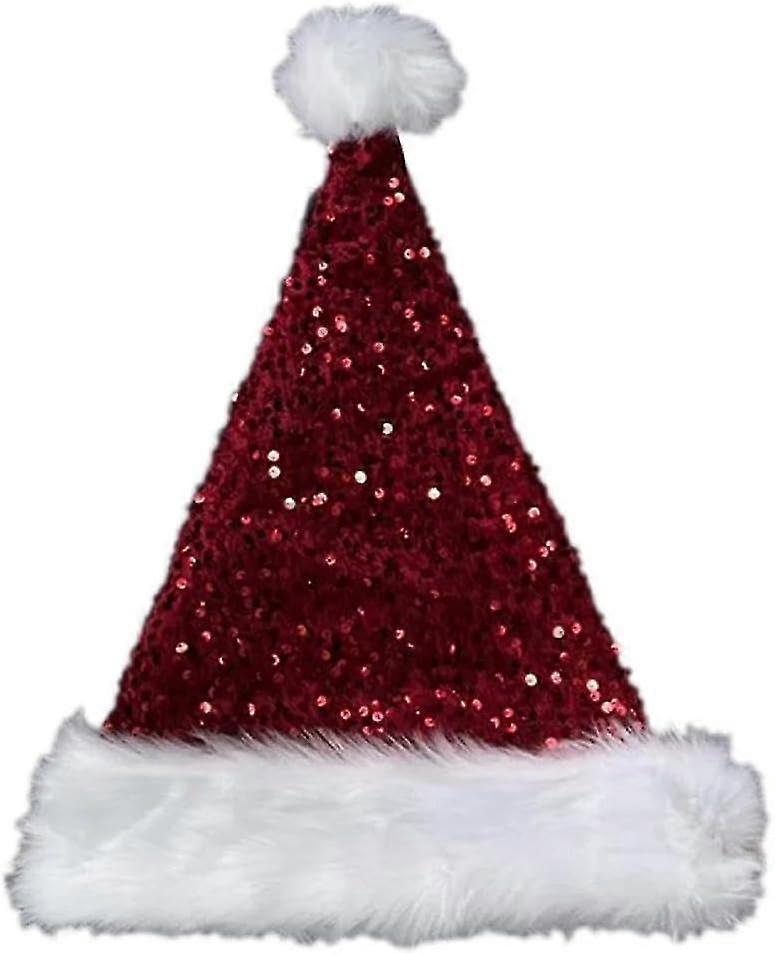 Bulk Thicken Plush Santa Hats with Sequins - Comfortable Adult Christmas Cap for New Year Holiday (White Brim and Symbolic Design)