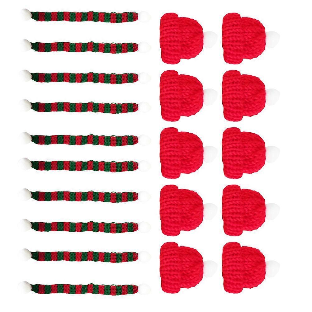 Mini Christmas Hats and Scarves Hat Ornament for Plants Approx 25x3x3cm Knitting Home Festival Decoration 20Pcs