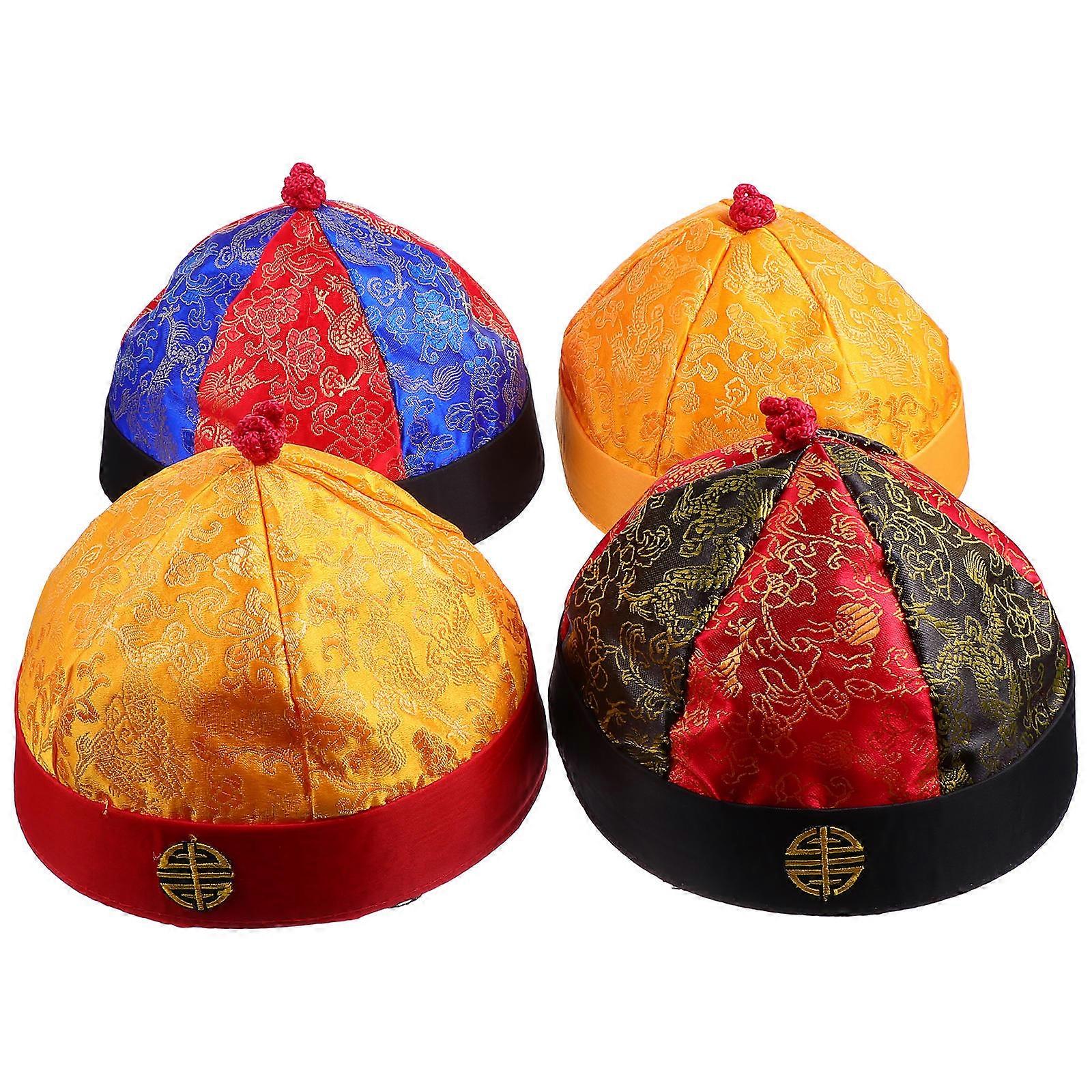 Hats Vintage Caps for Cosplay and Historical 16.5cm Brocade Material Clothes Matching 4Pcs