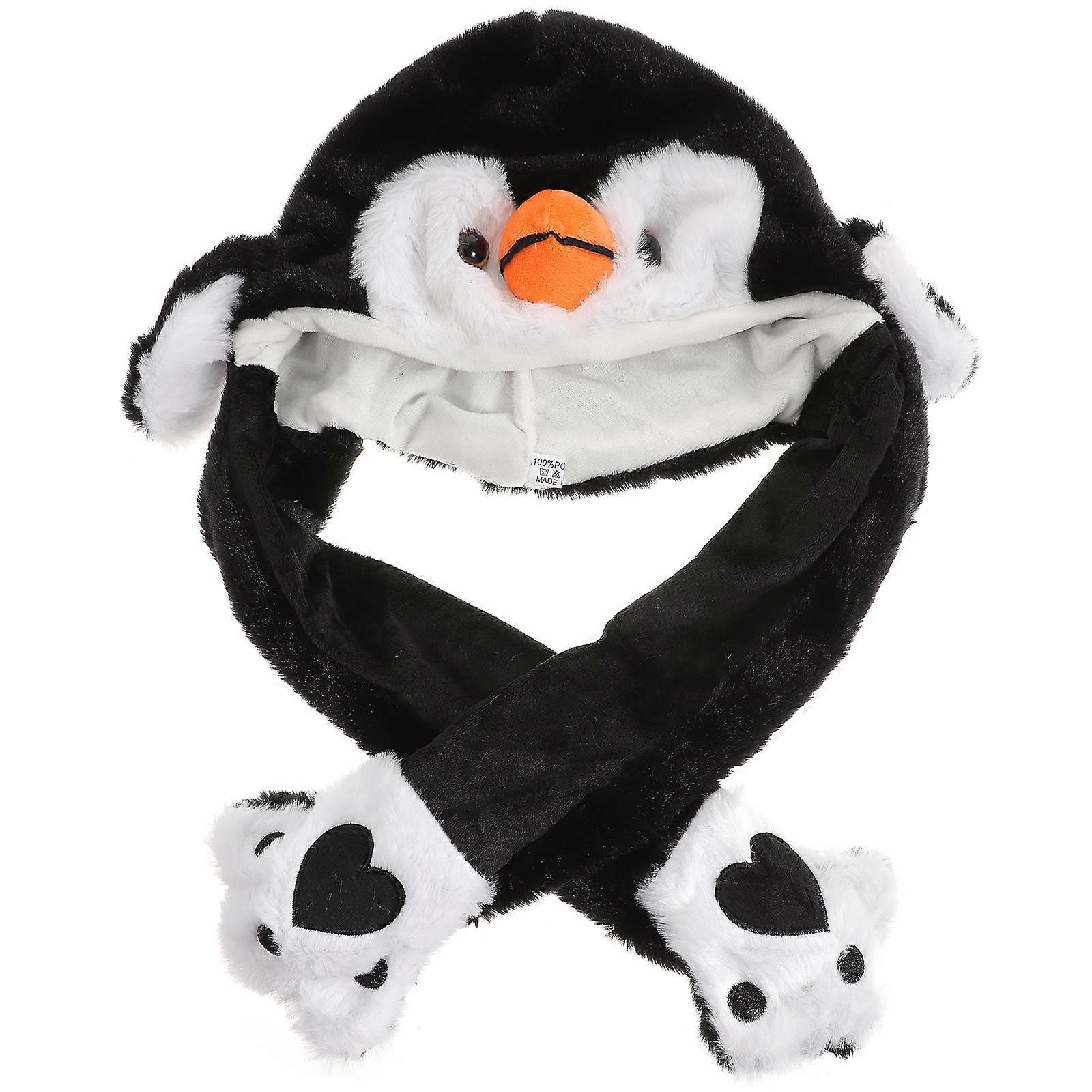 Funny Cartoon Penguin Hat with Moving Ears for Party Decor Black Plush Cotton Size One Size Fits Most