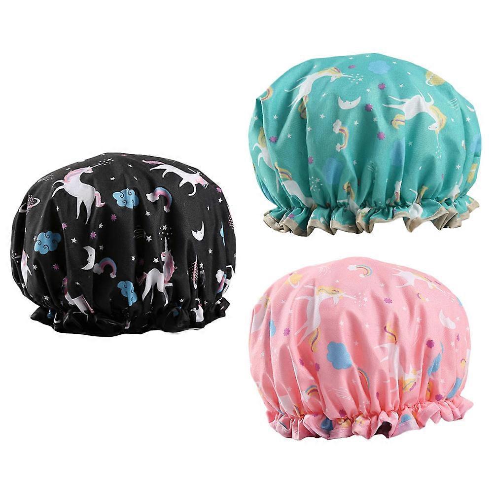 Bathroom Hat Double Layer Shower Cap Dustproof Waterproof 3Pcs