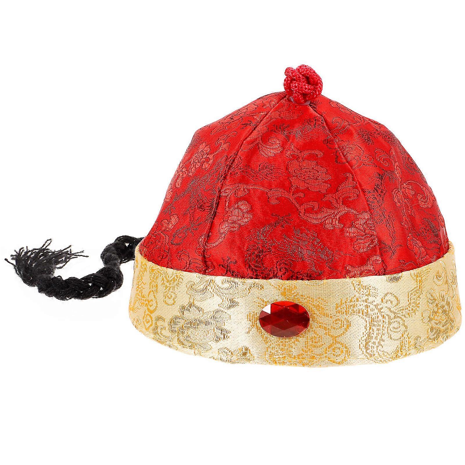 Hat Chinese Ancient Emperor Cosplay Headwear with Braid Ponytail Party Accessory Purple Red Gold Dragon 1Pcs