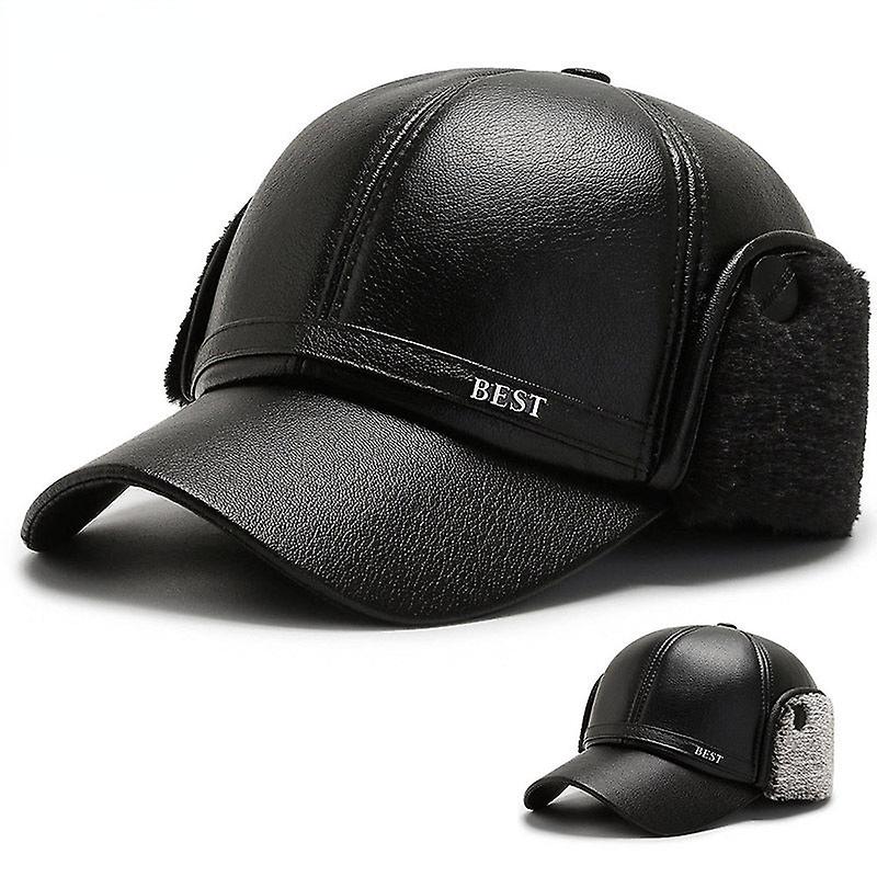 Baseball Hat Cap Casual Sport Outdoor Sun Classic Pu Leather Cold-proof Ear Protection Thickened