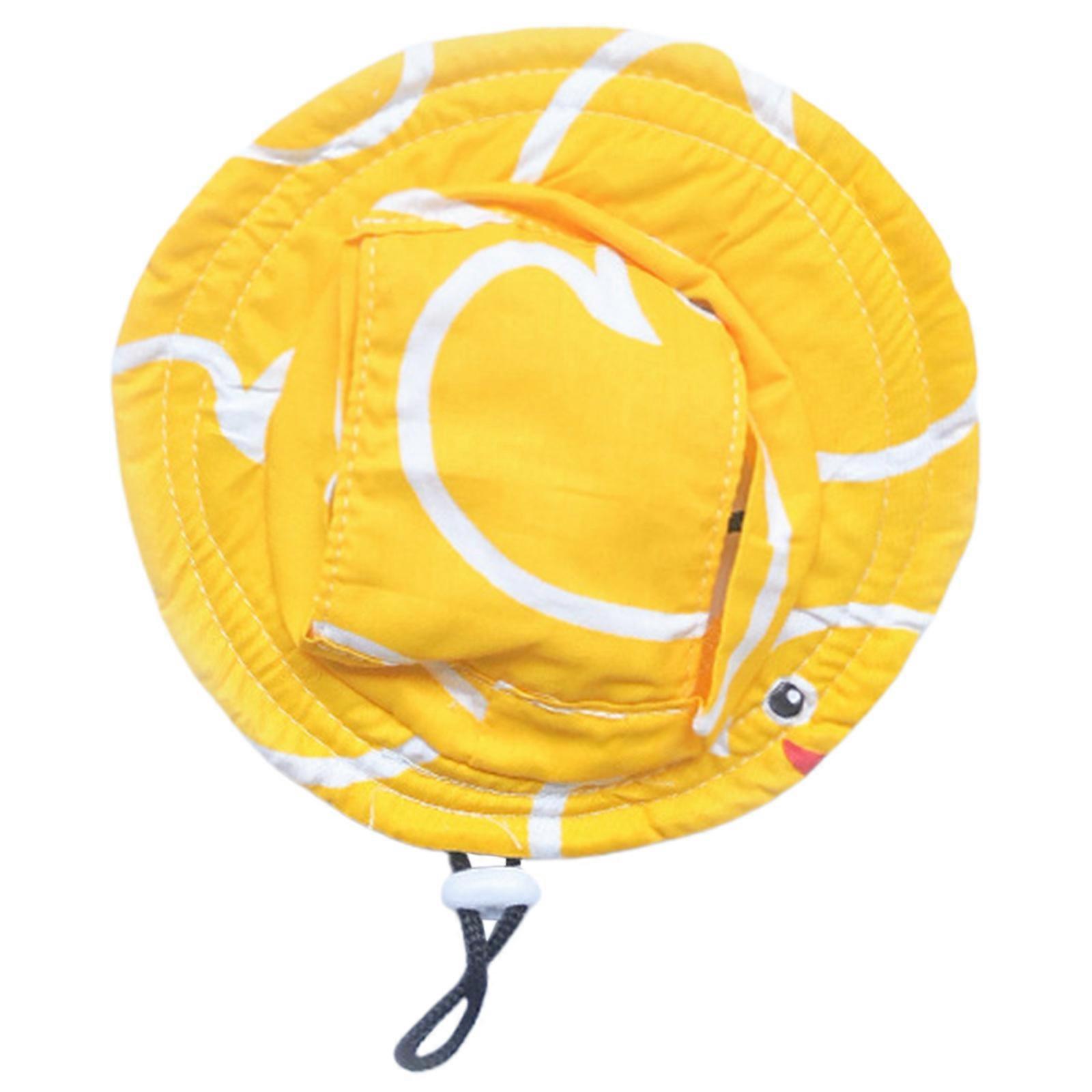 Puppy Bucket Hat with Double Ear Holes Outdoor Sunbonnet Costume Belt Outdoor Wear Colorful Photography Props Yellow M