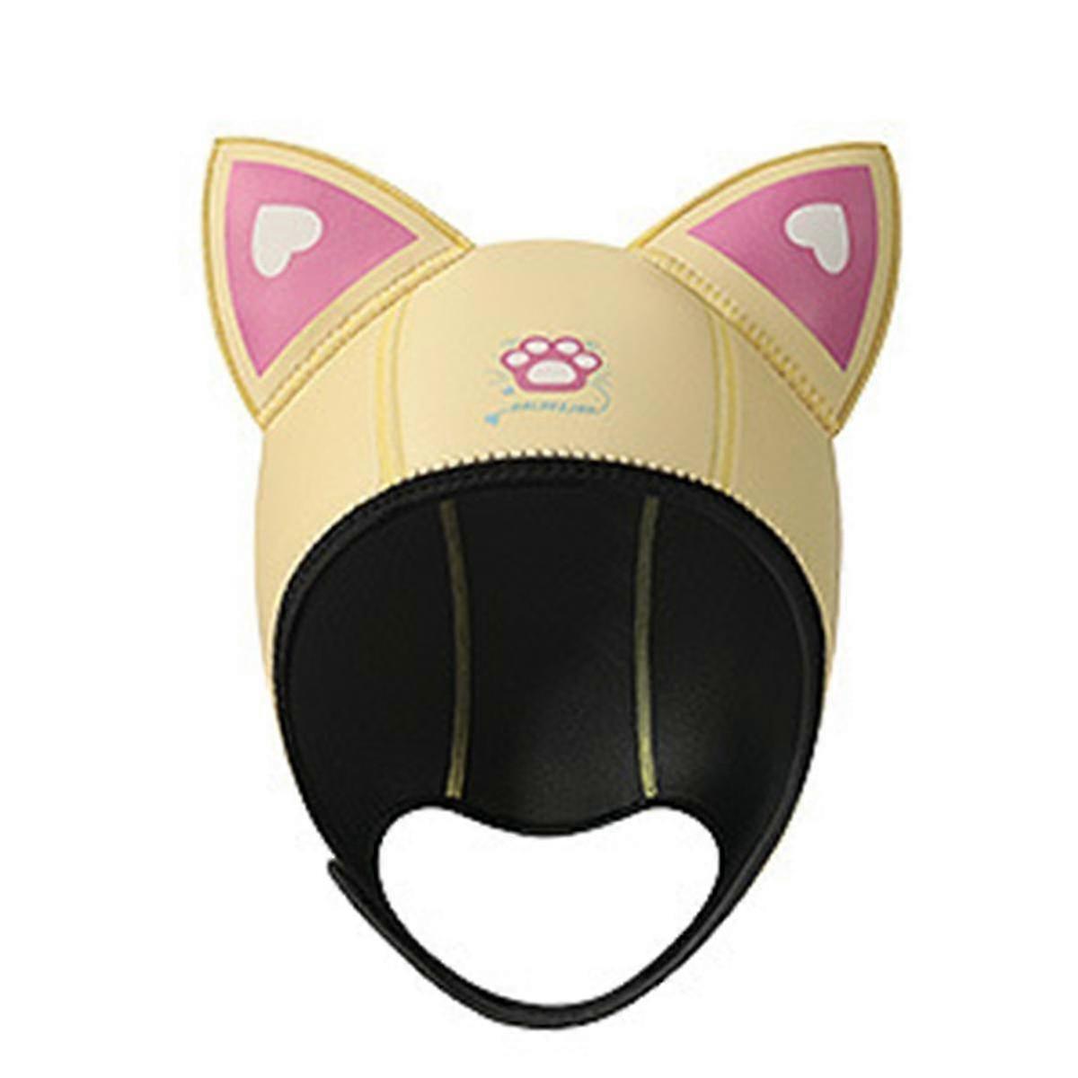 Waterproof Cat Ears Swim Cap with Adjustable Chin Strap for Women, Diving & Snorkeling Hood Lemon Yellow