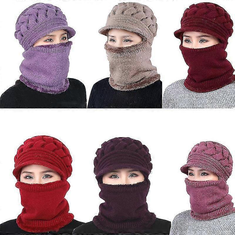 Womens Beanie Hat Winter Hats Scarf Mask Middle-Aged Old Warm Earmuff Cap Mom Gift
