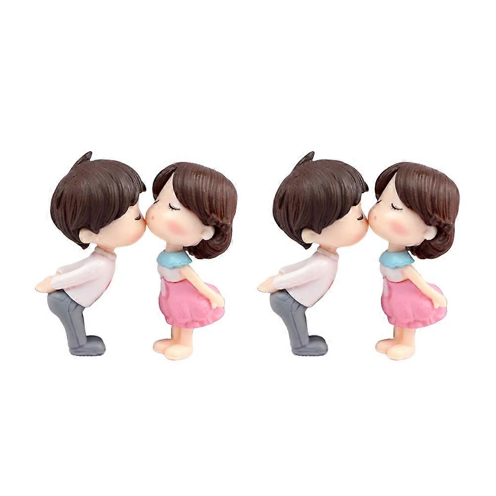 Kiss Couple Doll Crafts 2 Pairs Micro Landscape Ornaments for DIY Cake Decorations, Home, Lovers & Friends