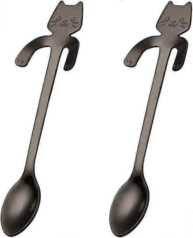 Cute Cat, Coffee Spoon,Tea spoon,Stainless Steel,4 PCS (Black)