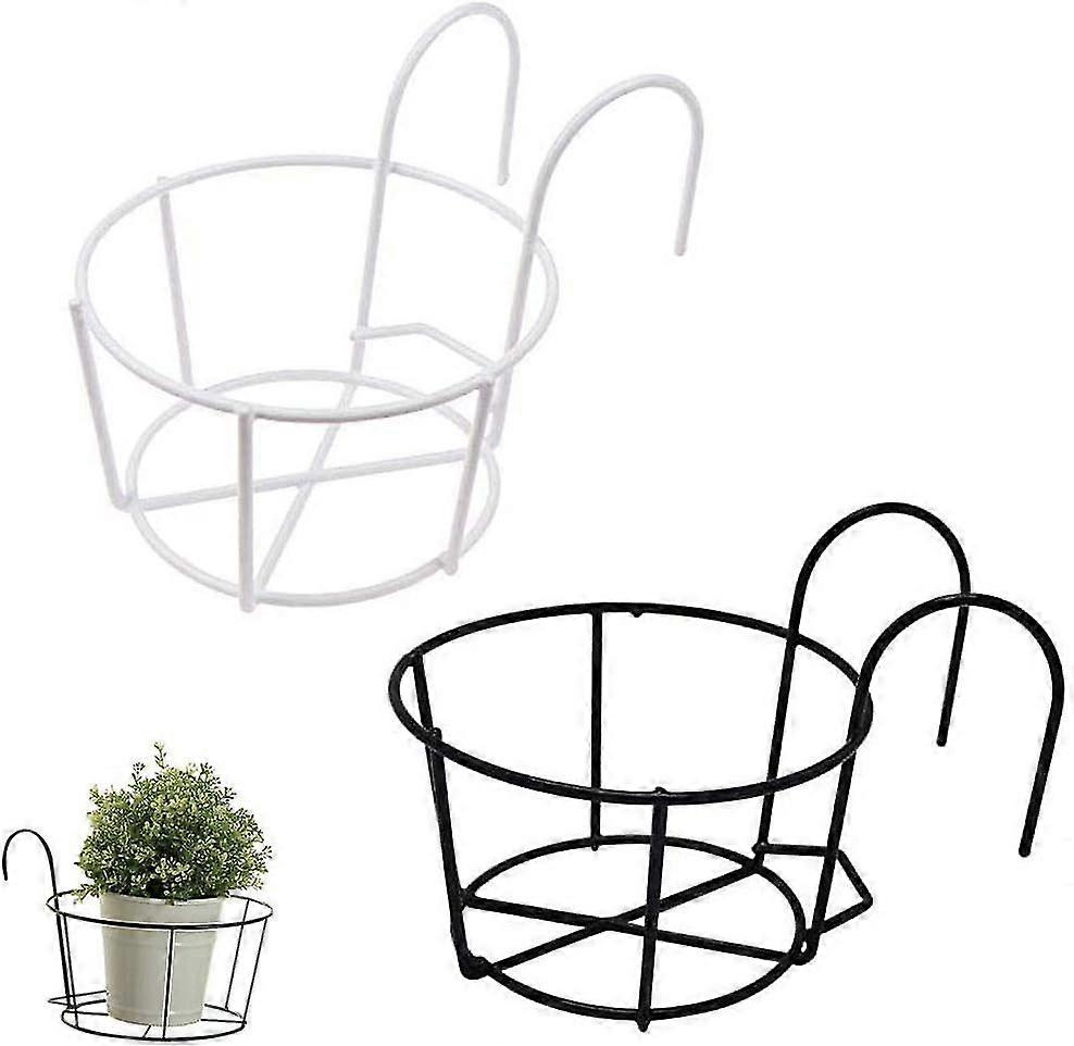 Pieces Iron Hanging Flower Rack, Round Hanging Flower Rack, Iron Hollow Out Round Iron Pot Hook for Home, Balcony, Garden, Railing, Fence (Black, Whit