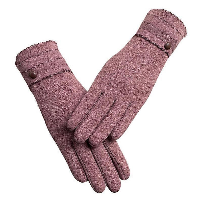 Winter Gloves Button Decor Full Finger Cover Wave Cuff Elegant Style Thin Women Gloves for Outdoor