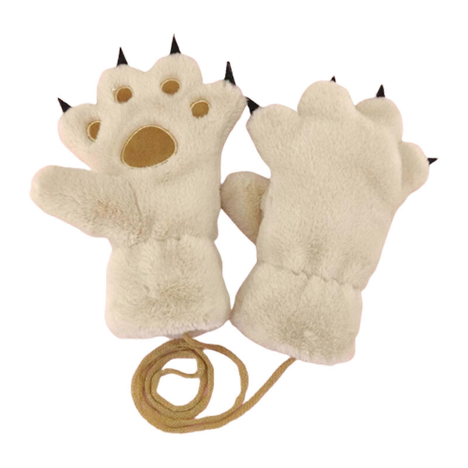 Warm Kids Winter Gloves with Cute Animal Paws Soft and Comfortable Children Winter Gloves with Thick Fleece Lining Beige