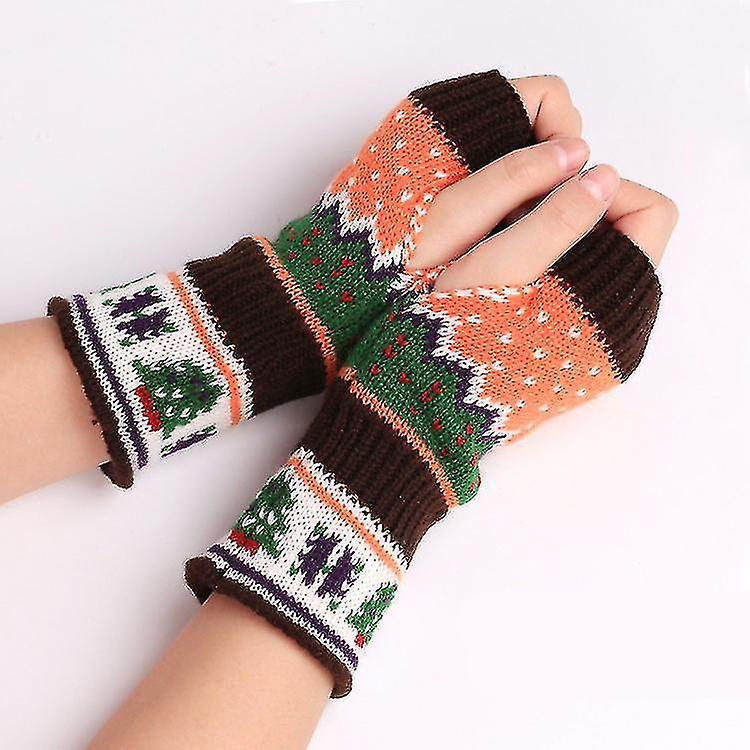 Christmas Tree Gloves Thickened Woolen Fingerless Open Finger Knitted Gloves Half Finger Gloves Colo