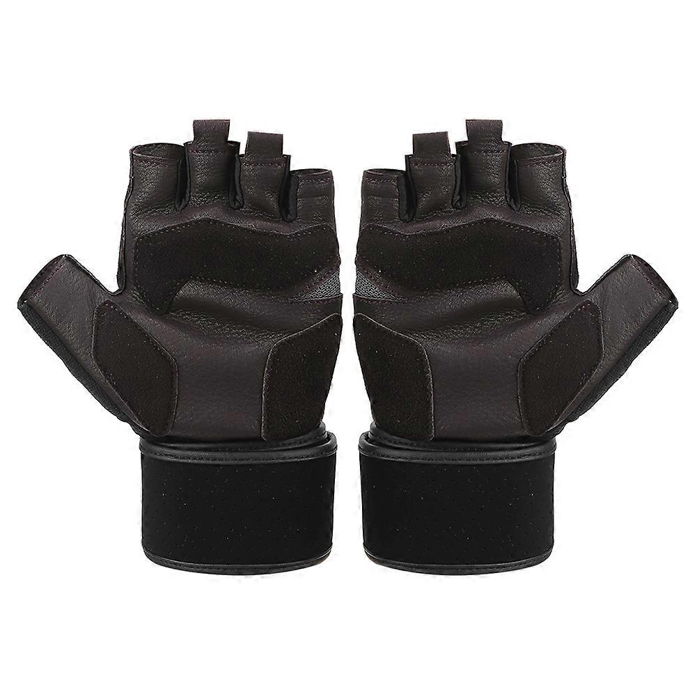 BOODUN Half Finger Gloves Deerskin Gloves with Wrist Wrap for Sports Fitness Training(M )