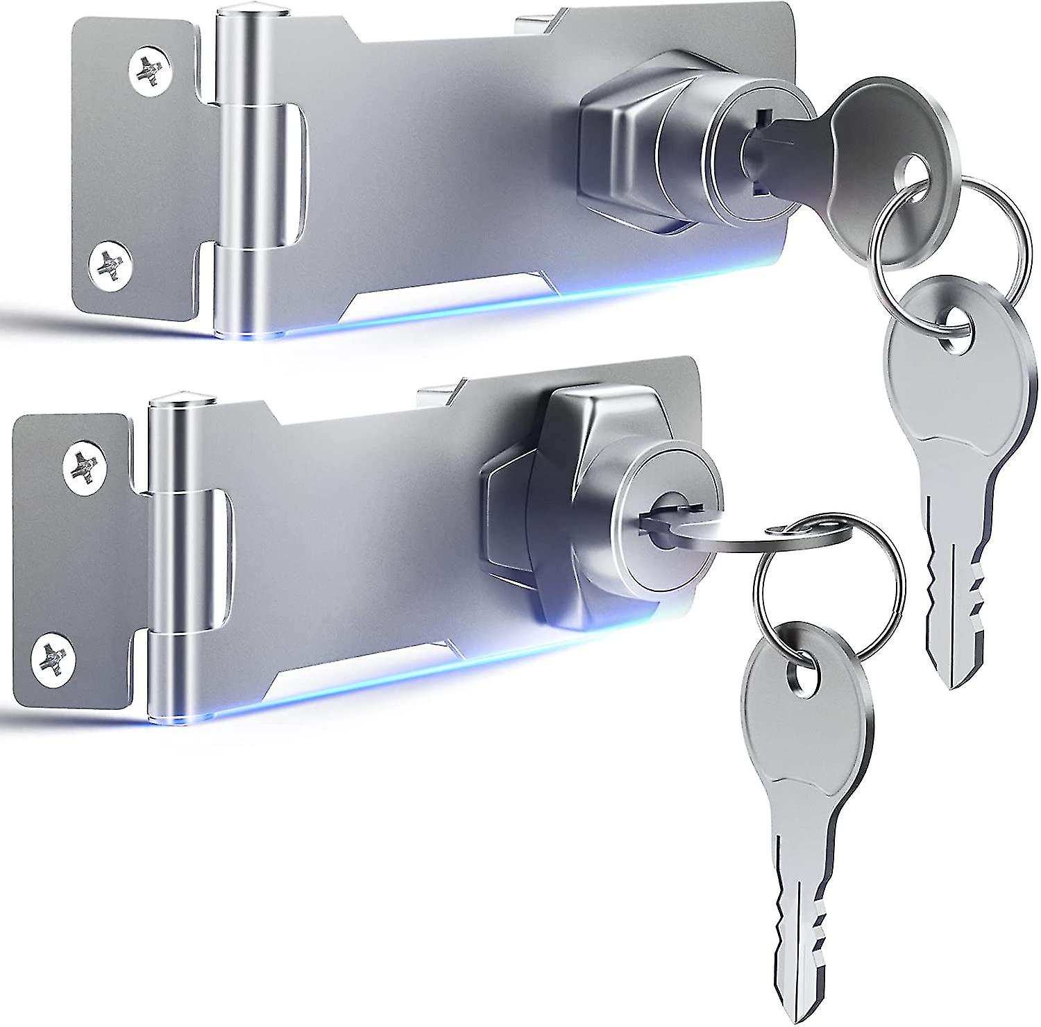 Hasp Lock For Drawers Cabinets Closets Toolbox Fridges, Padlock Latch Hasp Lock For Small Shed Fence Wooden Double Doors Locks Latch (4-inch Keyed Loc