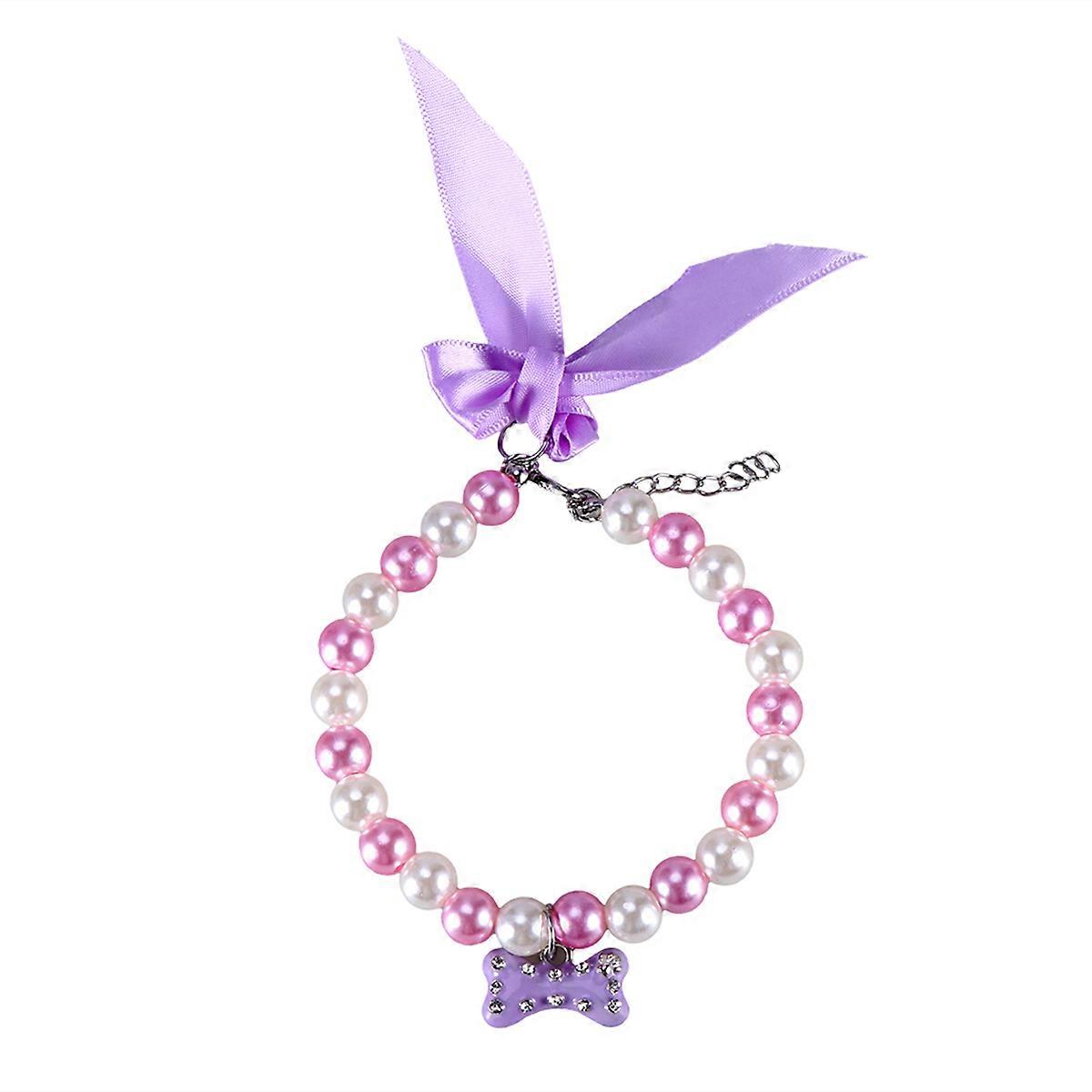 Pet Necklace Crystal Pandant Beautiful Pet Necklace Bowknot Pearls Jewelry (Light Purple + White, S)