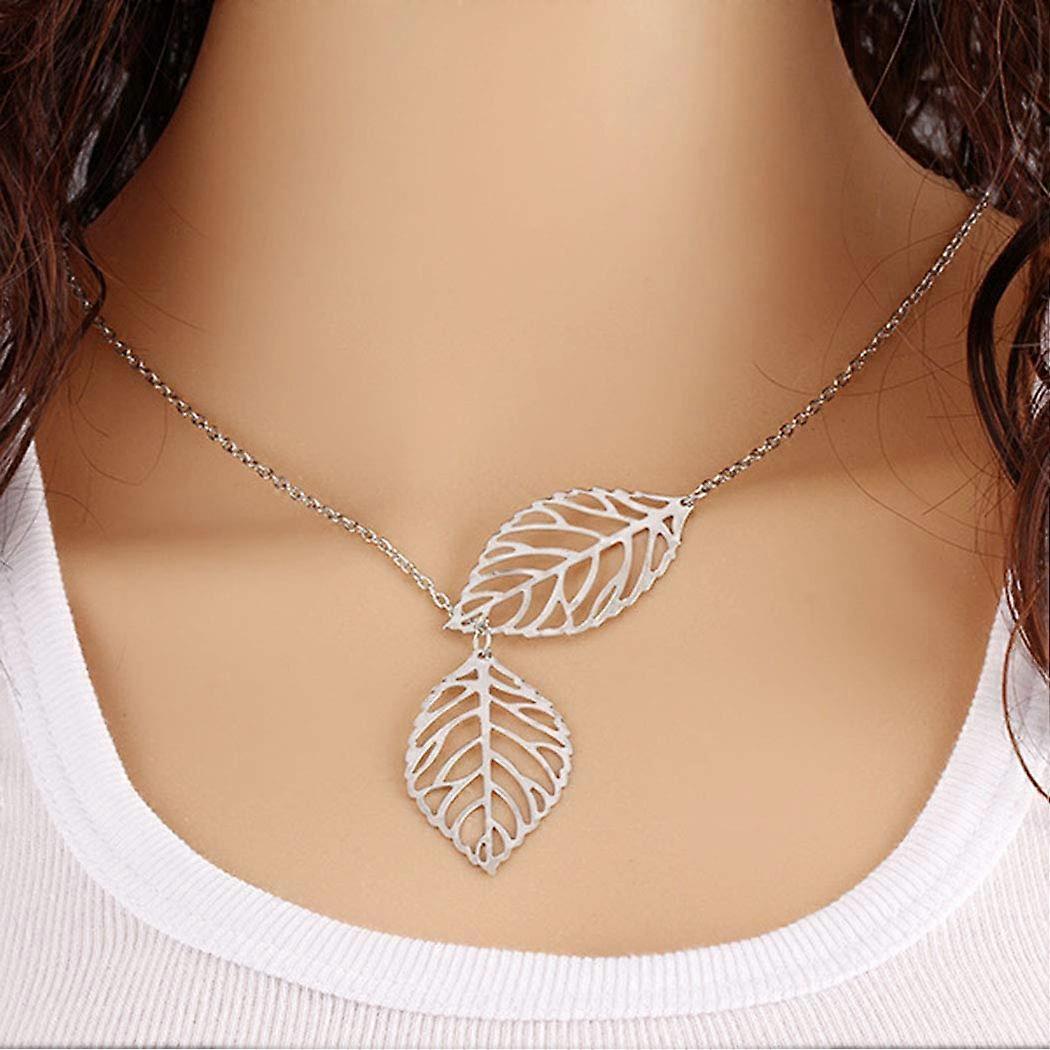 Leaf Necklace twin Leaves Necklace Pendant Necklace Silver Simple Lariat Necklace Chain Jewelry for Women and Teen Girls (Silver)