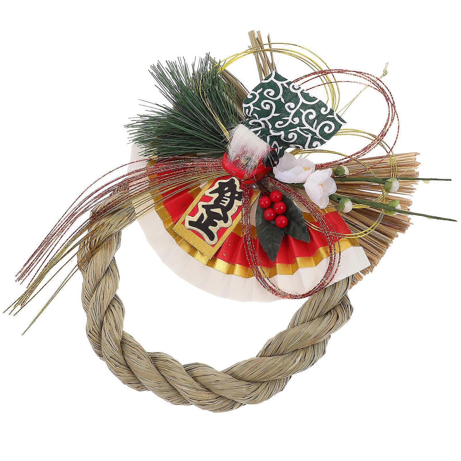 Straw Wreath Japanese Style Pendant for Wall Hanging 4Pcs Assorted Colors