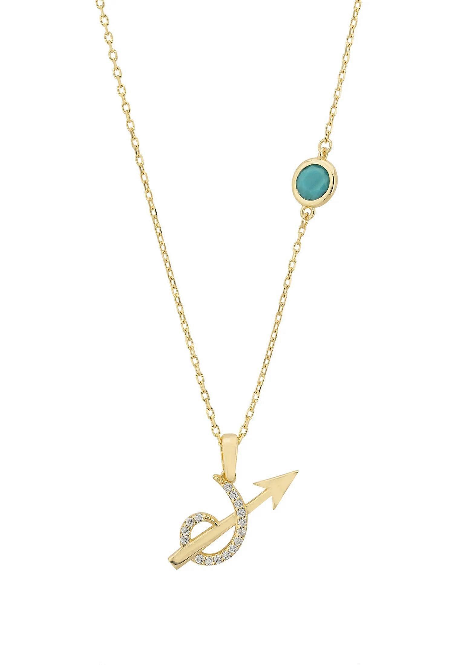 Latelita Zodiac Birthstone Sagittarius Necklace, 40-45cm Adjustable Chain, Cubic Zirconia Pendant with Turquoise Gemstone, 925 Sterling Silver and 18ct Gold Plated - For Women