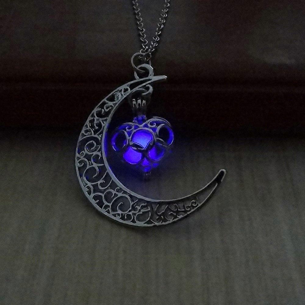 Luminous Stone Necklace Moon Heart Pendant Necklace Halloween Fluorescent Necklace Glow in The Dark Accessories for Women Teens Girls (Purple)