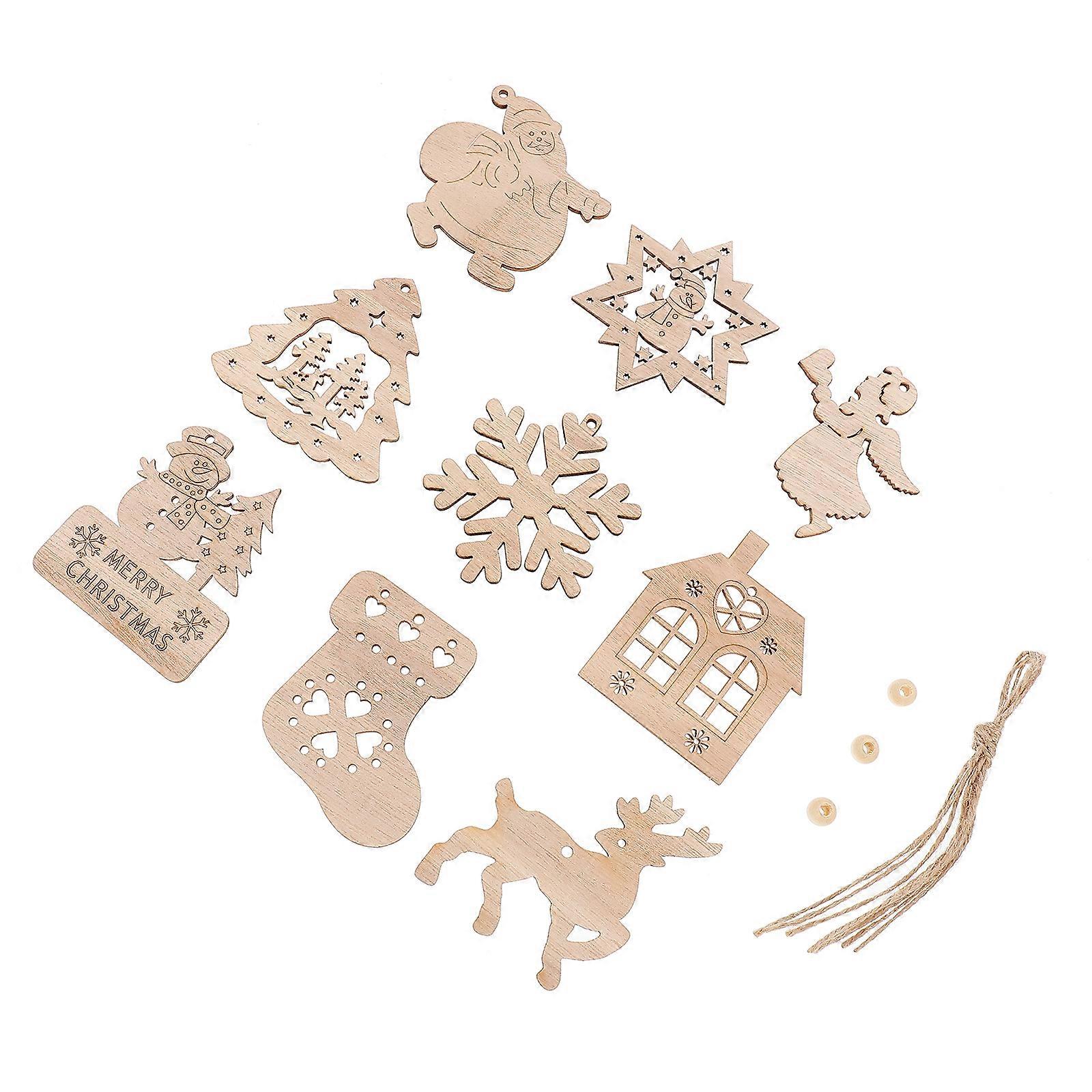 Handmade Xmas DIY Drawing Wood Chip Pendant 32.00x32.00x1.00cm Art Creation 1 Set