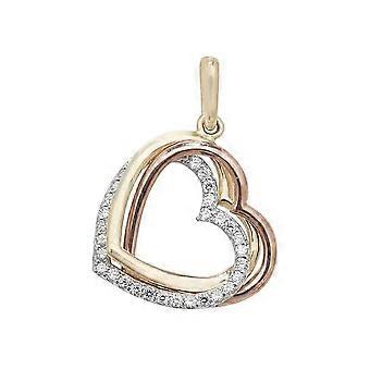 9ct Tri Col Gold Heart Zirconia Pendant PN1008