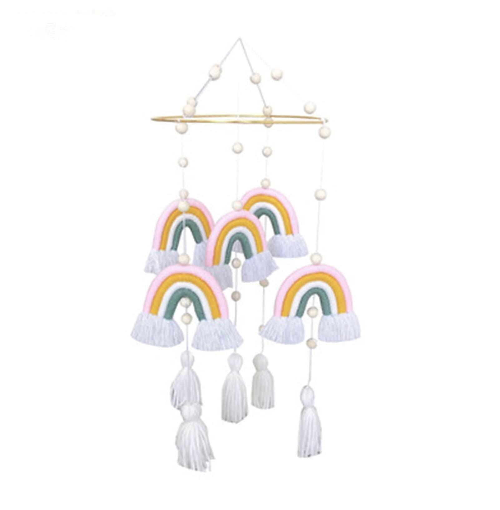 Cotton Handwoven Tassel Pendant - Rainbow Baby Mobile Hanging Bed Bells for Baby Toddler Room (Pink)