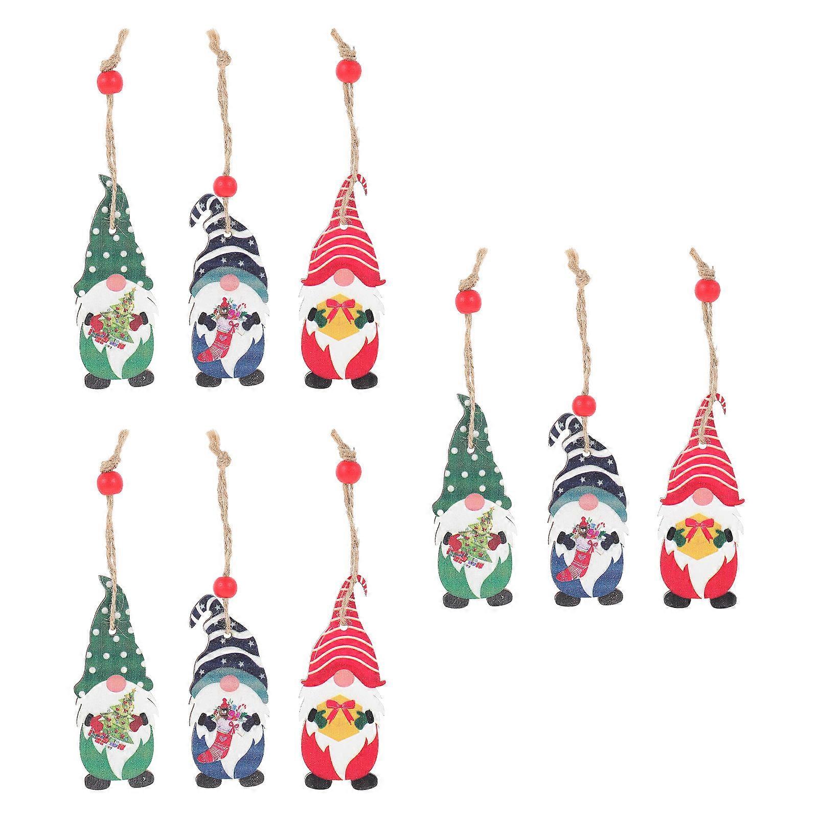 Christmas Dwarf Pendant Wooden Santa Pendants for Decoration 9Pcs