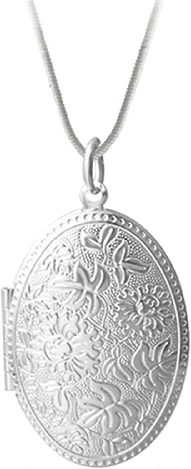 Dainty Necklace for Women,Unisex Fashion Silver Plated Alloy Carving Locket Pendant Chain Necklace Jewelry