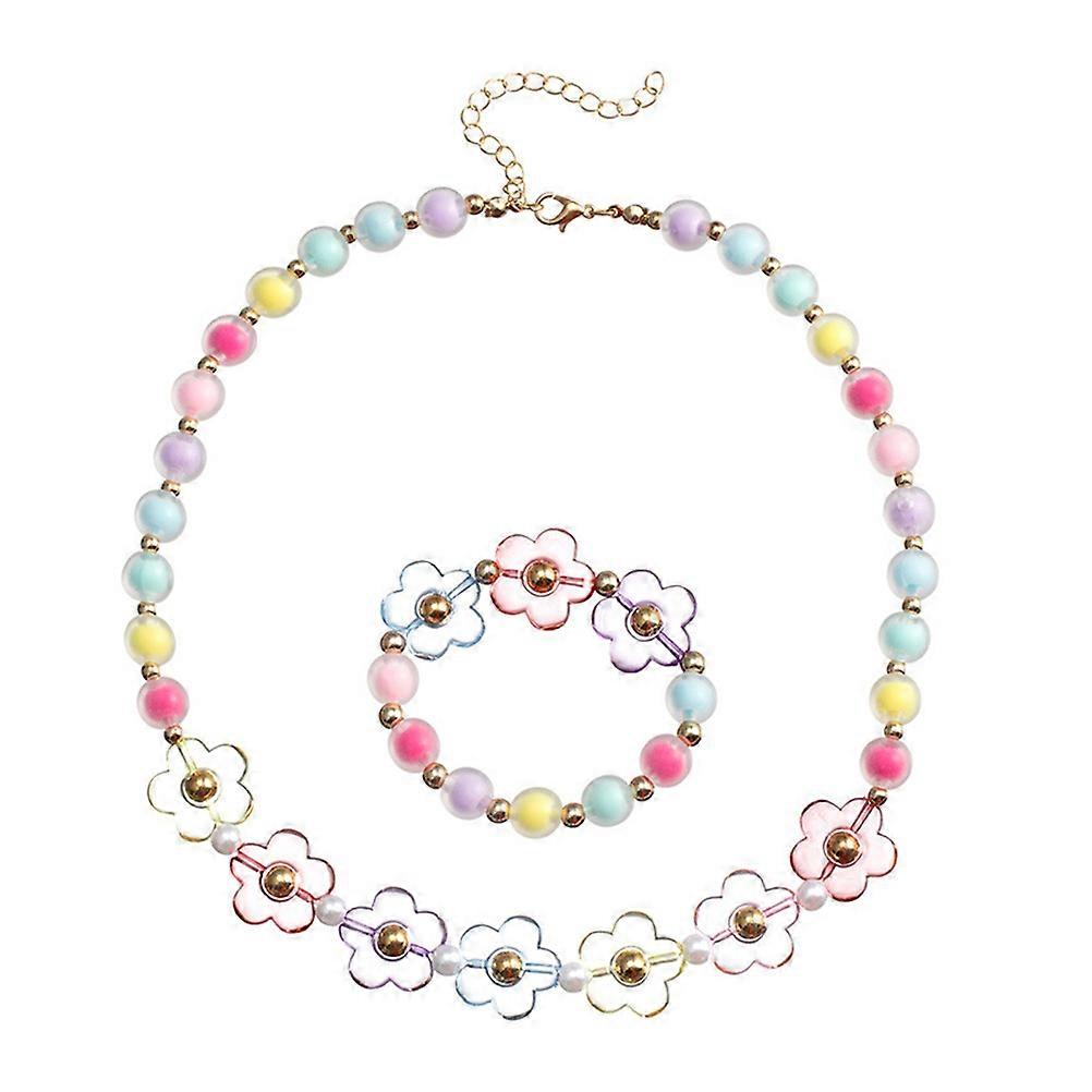 Beaded Necklace & Bracelet Set with Adorable Flower Design for Party Jewelry, Dress Up and Stage