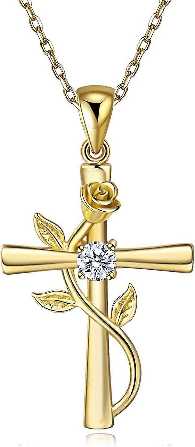 Necklace for Women Cross Rose Pendant 925 Sterling Silver Round Cubic Zirconia Faith Hope Love Rose Flower Necklet Gift for Women