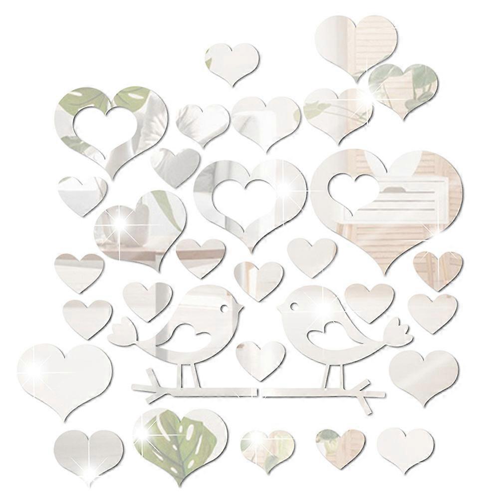 Heart Bird Wall Stickers Mirror Decals for Living Room Bedroom Decorative Art Easy to Apply Home Wall Art Stickers Heart Shaped Design