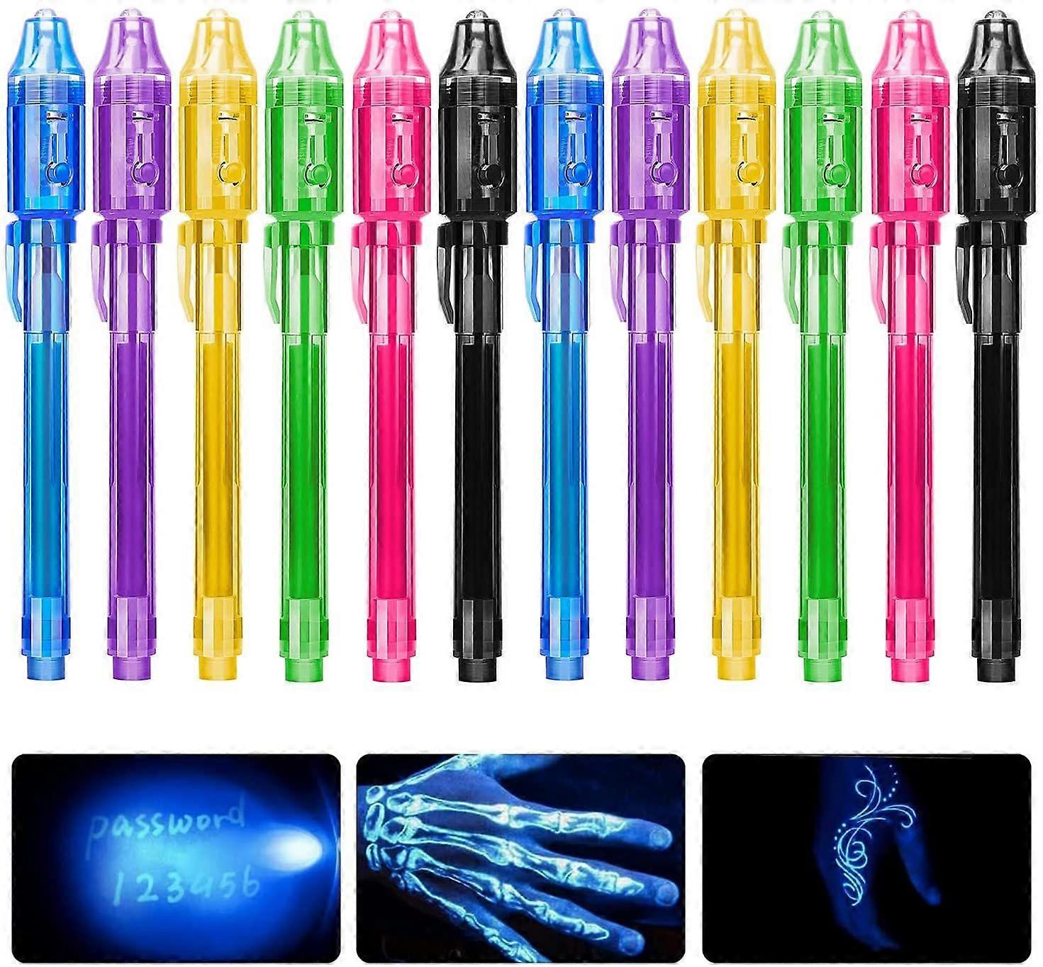JUSCH Invisible Ink Pen (12 Pack) Latest Spy Pen + 6 Flexible Bendy Pencils, with UV Light Fun Activity Entertainment for Kids Party Favors Ideas Gift