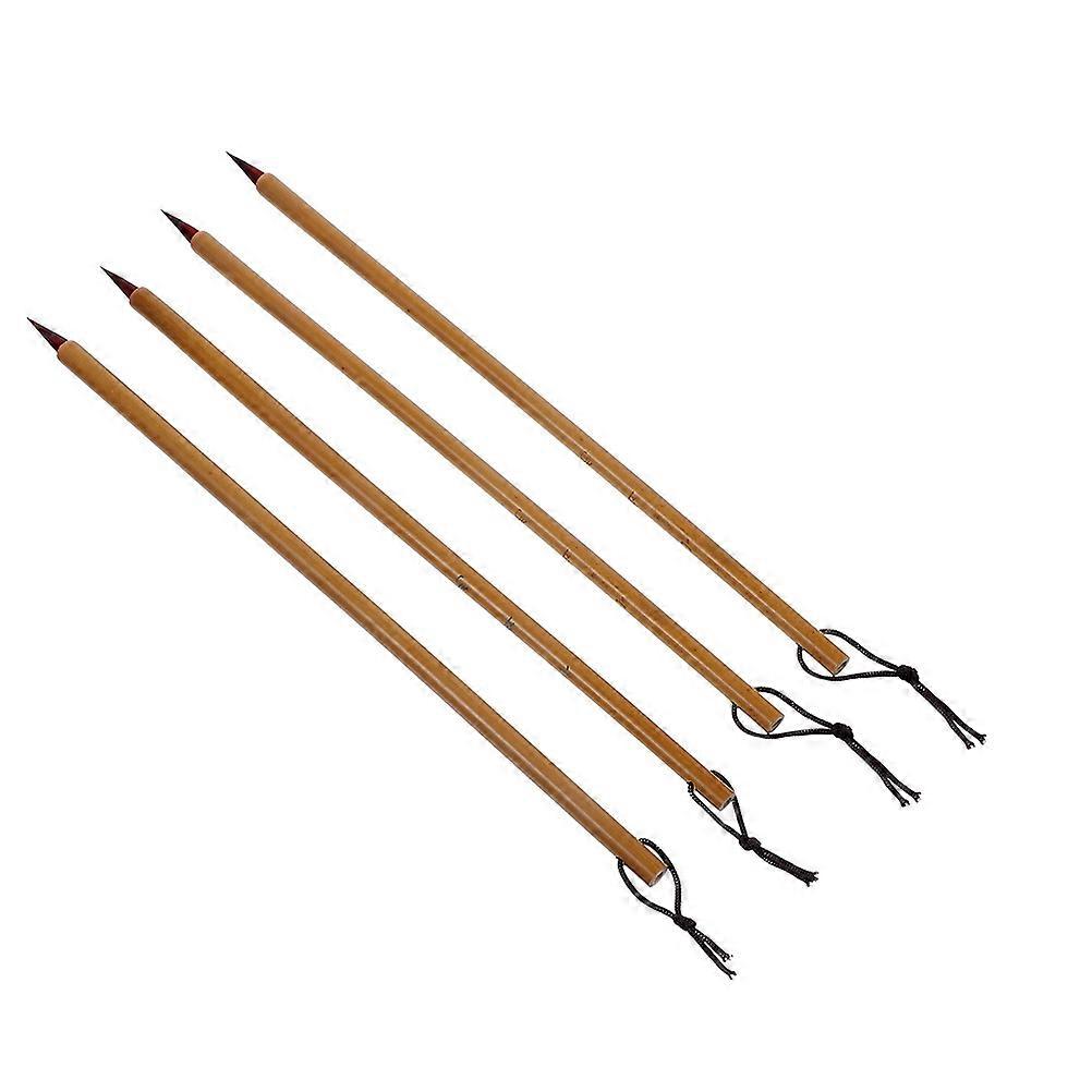 Brown Bamboo Calligraphy Brush Pen for Writing Portable with Lanyard Design 4pcs