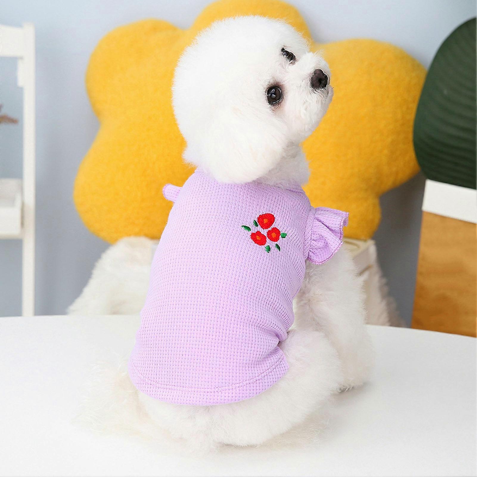 Dog Shirt Breathable Soft Comfortable Pet Ruffled Sleeve Vest Pet Summer Clothes for Summer Daily Purple M