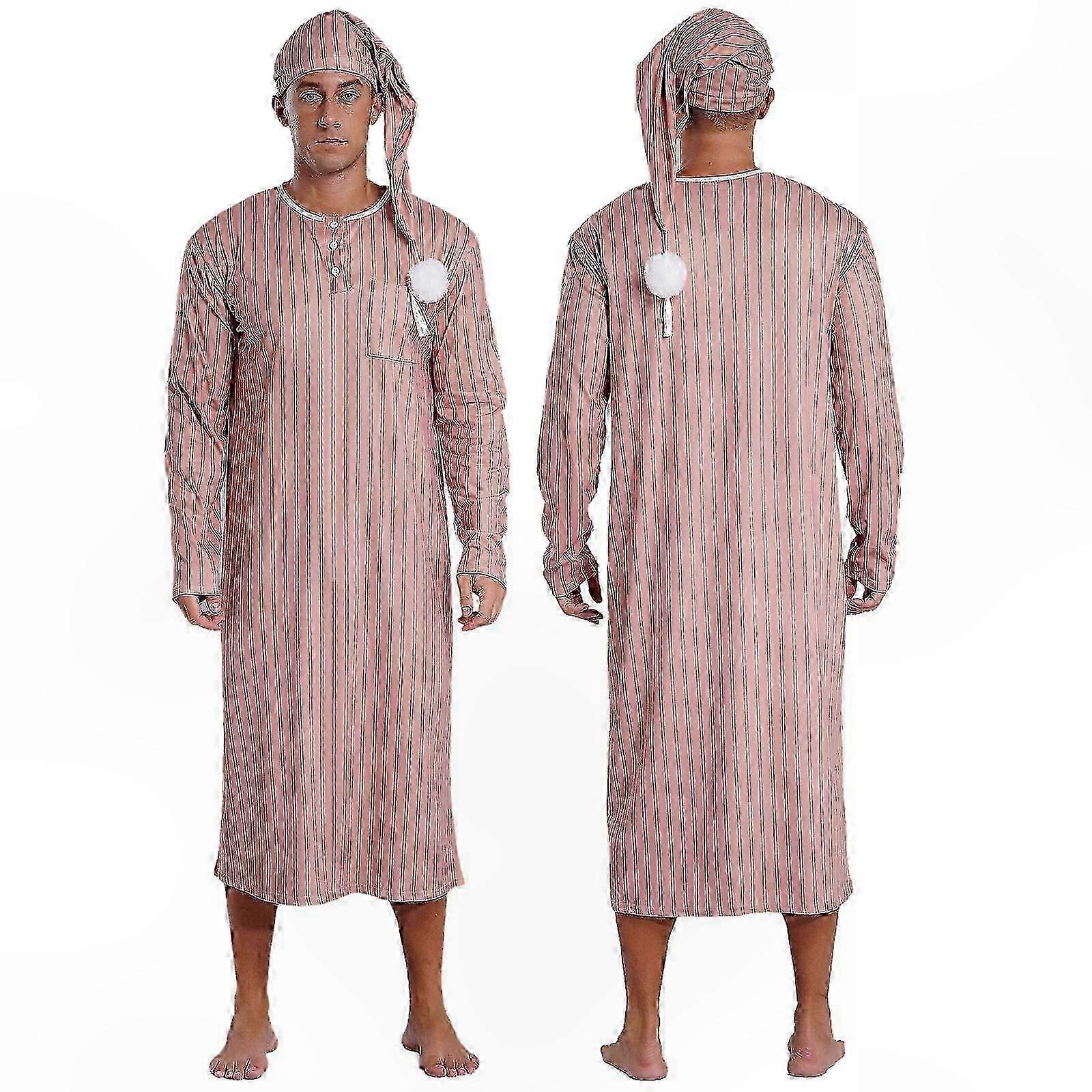 Men's Striped Henley Nightshirt Long Sleeve Sleepwear for Big & Tall with Hat