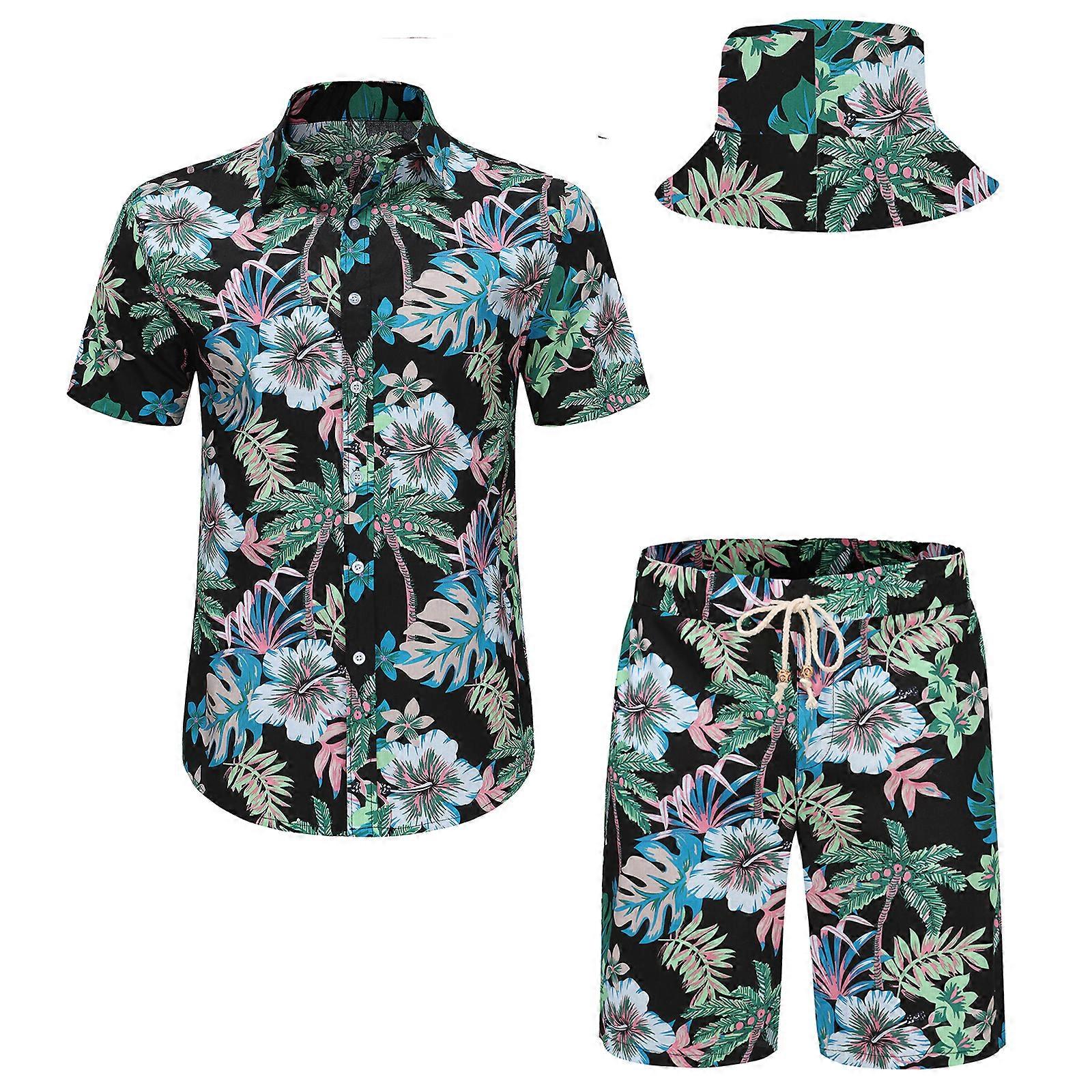 Men's Hawaiian Shirt and Short Set with Bucket Hats