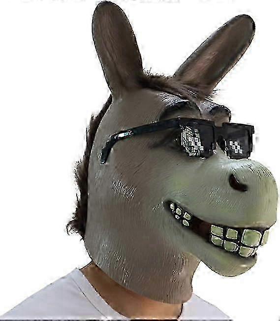 Donkey Mask, Latex Sherk Mask, Deluxe Full Face Animal Head Mask for Halloween Adult Costume Party