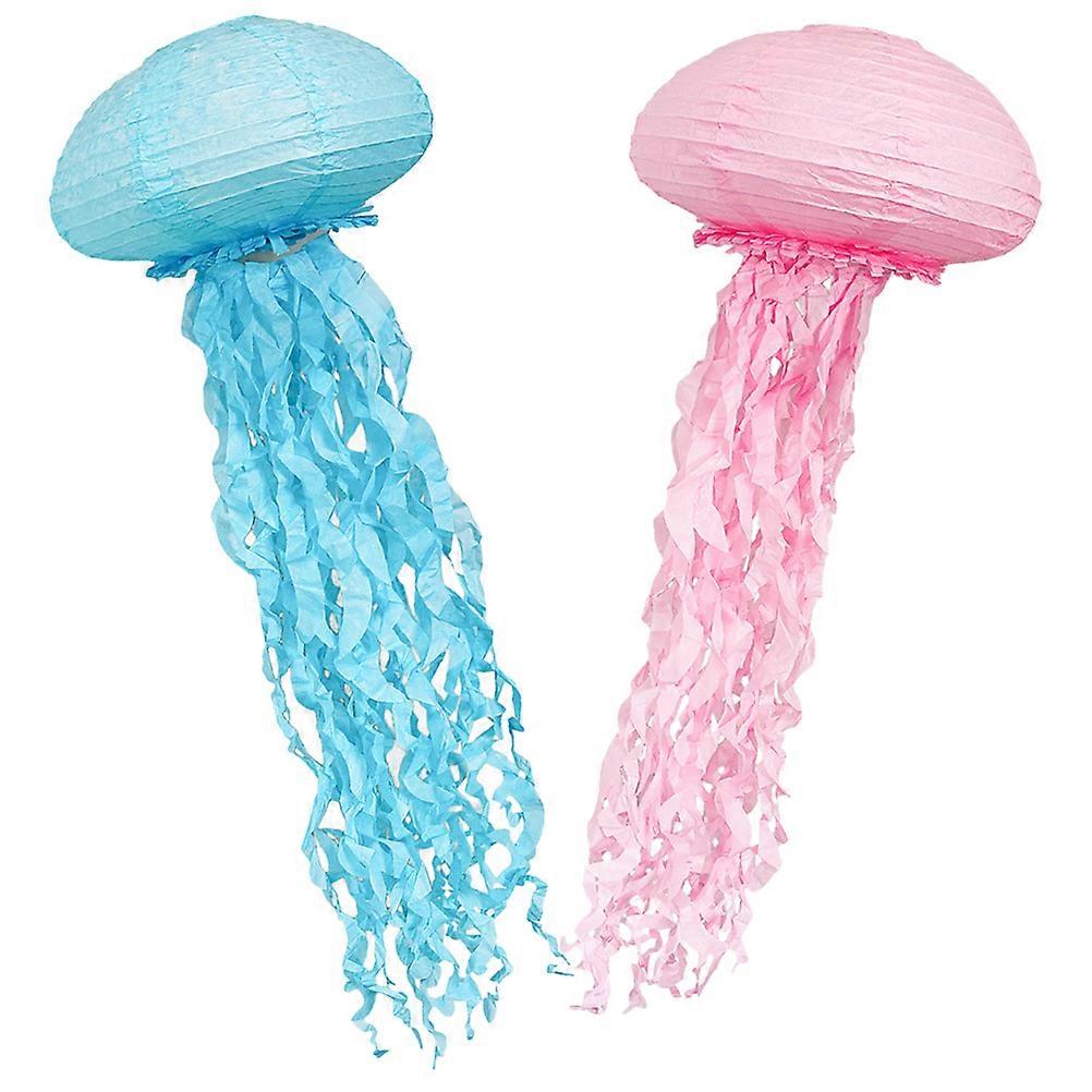 Jellyfish Lantern Party Decor Hanging Paper and Metal Lanterns for Decoration Assorted Color 2pcs