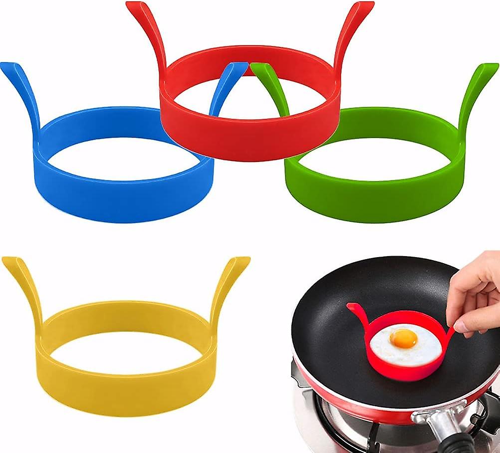 [Comes with 2 Handles]Unique design and keep cool handle, making it easy to use and making omelettes quickly and easily. [Heat-Resistant]Egg rings have great oil-resistant and high low temperature resistant performance, - 40 to 446F/230C. [High Materials]The egg rings are made of safe silicone materials, which can be used at high temperatures, will not deform or melt. [Cleaning and Storage]The egg ring is practical and reusable. Non-stick silicone can be easily cleaned, just wash in soapy water and dishwasher. [Multi-function egg ring]It is very suitable for making homemade omelets, muffins, omelets, eggs Benedict, pancakes, etc. 4 Pcs Silicone Egg Moulds Rings Feature: 1. Non-stick egg ring, easy to demould, easy to clean, not easy to fade. 2. Excellent anti-skid and shock resistance, excellent oil resistance and high and low temperature resistance. 3. With a liftable handle, it can be placed and taken out of the pot without any problems. Easy To Use With a handle, it can be easily put into the pot or taken out and placed without other auxiliary tools. Safe and soft These silicone egg rings are made of safe silicone, soft and flexible, and are a must-have good helper for your kitchen. Egg cooking Say goodbye to traditional egg cooking methods-metal egg ring, egg cooker, try this one, make healthy eggs a must-have for your breakfast, or add it to any other meal time. Colours: red, green, yellow, blue Size: 8cm diameter Product Includes: 4x Omelette Moulds