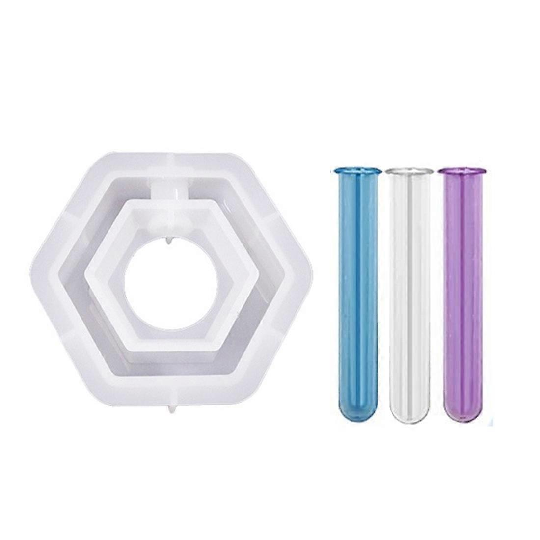Vase Resin Moulds, Resin Moulds Silicone Heart Hexagon Epoxy Resin Moulds Silicone Moulds with 3 Tubes,1pcD-