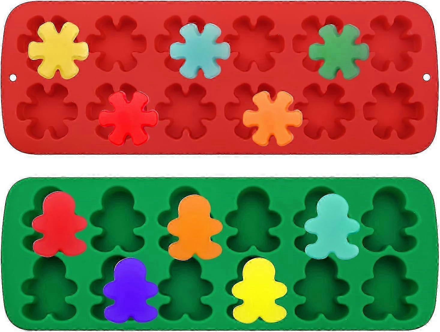 Christmas Chocolate Silicone Molds 2-Pack - Snowflake Gingerbread Man Shape, 24-Cavity for Cake Decorating & Chocolate Making