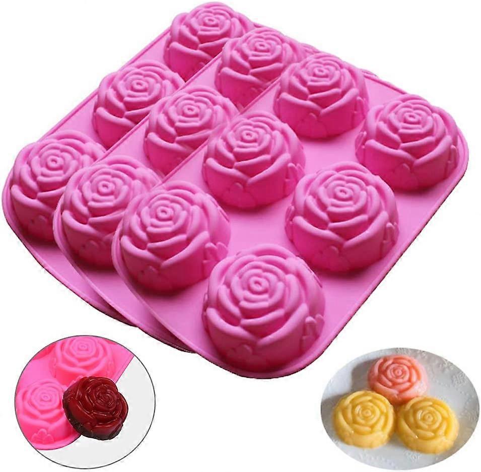 Silicone Soap Molds, 3 Pack 6 Cavity Rose Shaped Silicone Baking Mold Cake Mold Ice Cube Tray for Chocolate Muffine Jelly Pudding - -