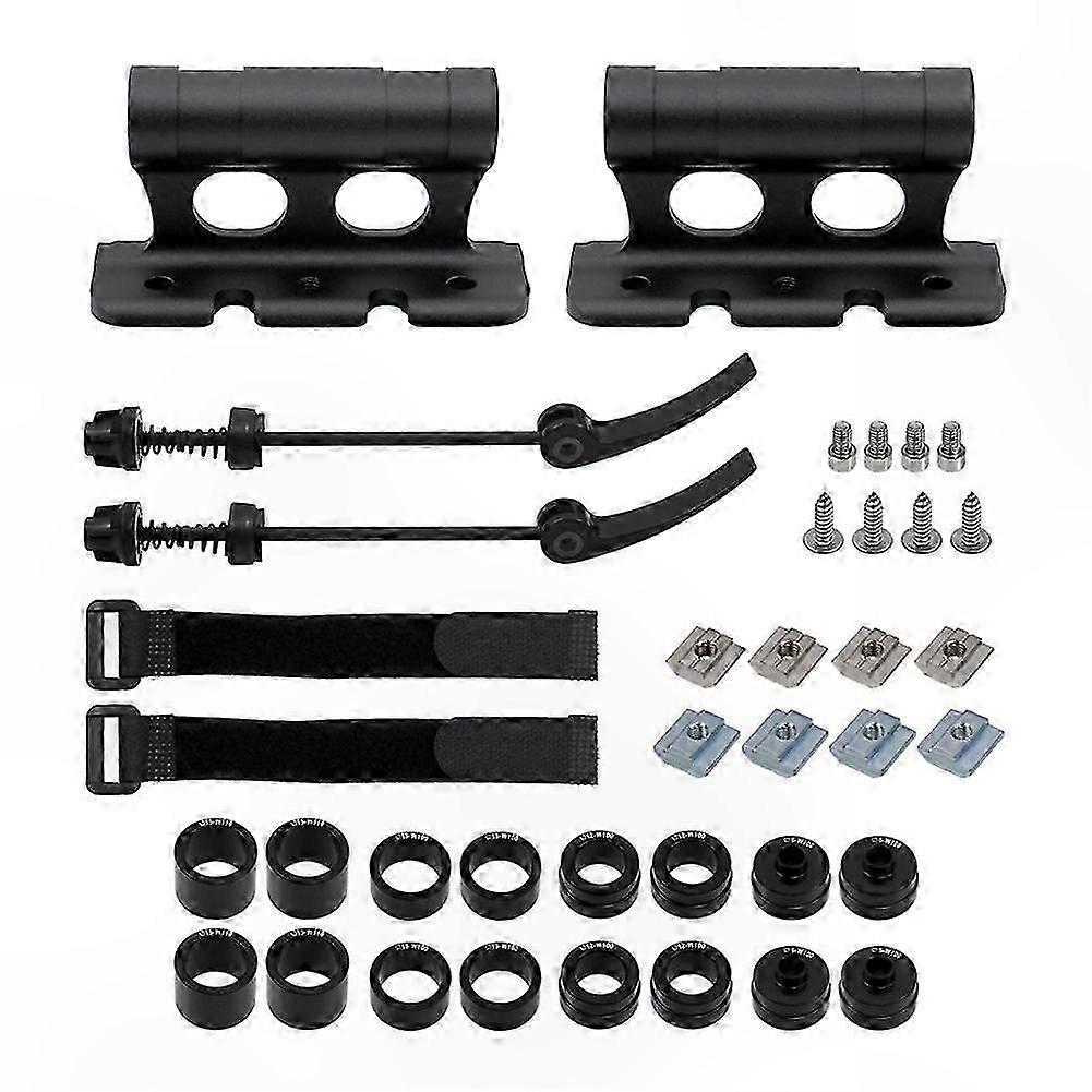 [Versatile Quick Release Design] The Quick Release Bike Front Fork Mount Bracket Set offers universal compatibility with most cars, trucks, and pickups. Its flexible design allows for both vertical and horizontal mounting, providing versatile usage options. Equipped with belt fasteners, it helps reduce crank wobble, making it a practical and reliable choice for bicycle accessories. [Alloy Construction] Made from durable aluminum alloy, this bike fork mount ensures strength and stability. It is lightweight, easy to carry, and designed to protect your vehicle's paint while delivering strong load-bearing performance. [Multi-Functional Application] This bike fork mount serves both storage and transportation purposes. The quick-release mechanism allows for easy mounting in a garage, home, shed, or on a wall for convenient storage. It can also be installed on various vehicles for efficient bicycle transport. [Effortless Installation] Installing this front fork mount is fast and straightforward. Within minutes, you can set it up and be ready for use, ensuring a smooth and hassle-free experience. [Reliable Bike Support] With its sturdy build and secure mounting design, this fork mount provides dependable bike support, offering peace of mind during transport and storage. Color: Black Material: Aluminum Alloy Package Contents: 1 x Bicycle Rack Mount Kit Note: Light reflection and different displays may cause slight color variations between the image and the actual item. Measurement may vary by +/- 1-3 cm.