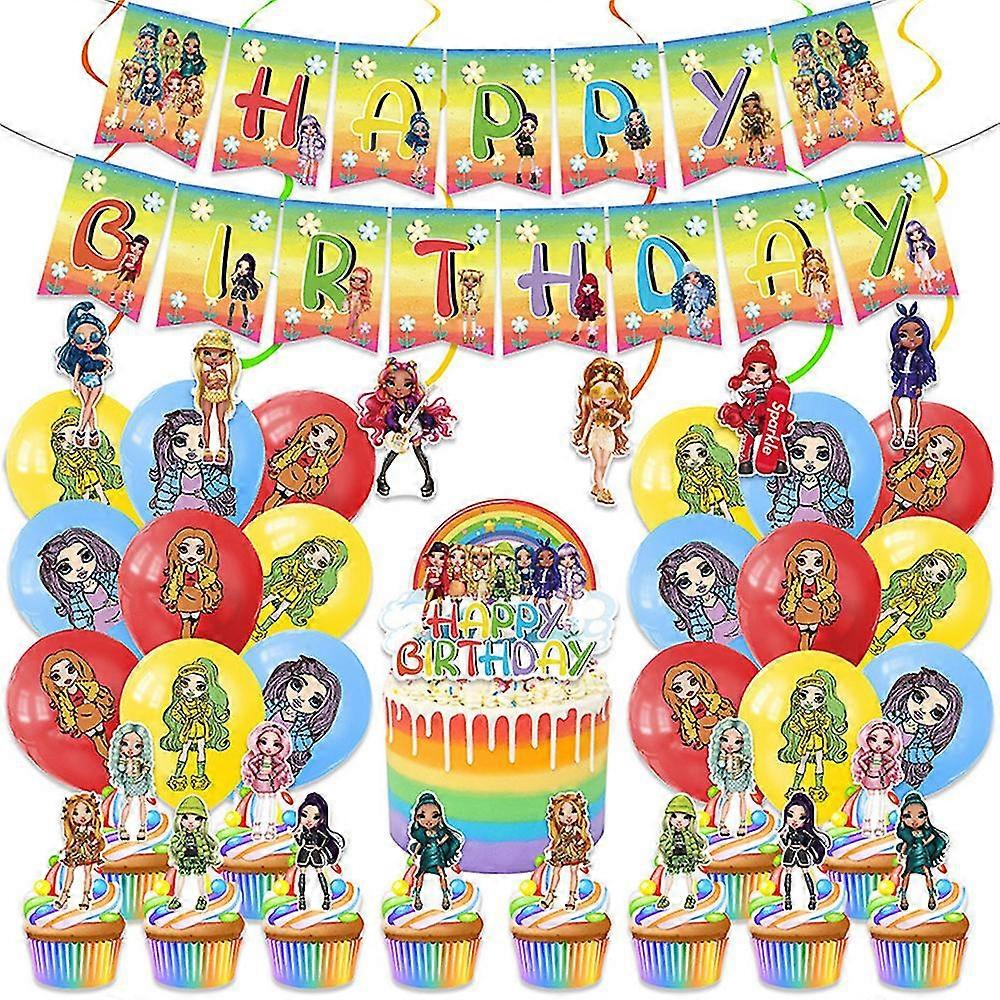 Rainbow Doll Kids Girls Birthday Party Balloons Banner Cake Topper Set Decor Supplies Kits