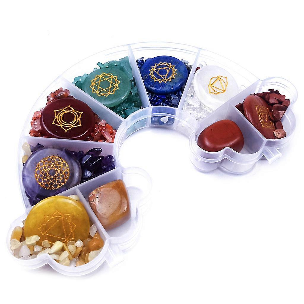 Rainbow Shaped Boxed 7 Chakra Stone Reiki Balancing Tumble Chip Crystal Healing Reiki Wicca Stones Specimen Kit Polished