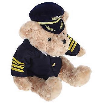 Soft Plush Captain Bear in Pilot Uniform – Adorable Stuffed Animal Hugging Pillow for Nursery, Holiday Decor, Home Office Charm, and Gift Giving