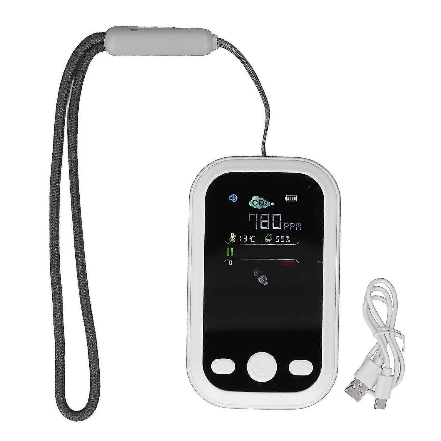 CO2 Detector NDIR Sensing Type C Charging Temperature Humidity Tester Portable Air Quality Monitor White