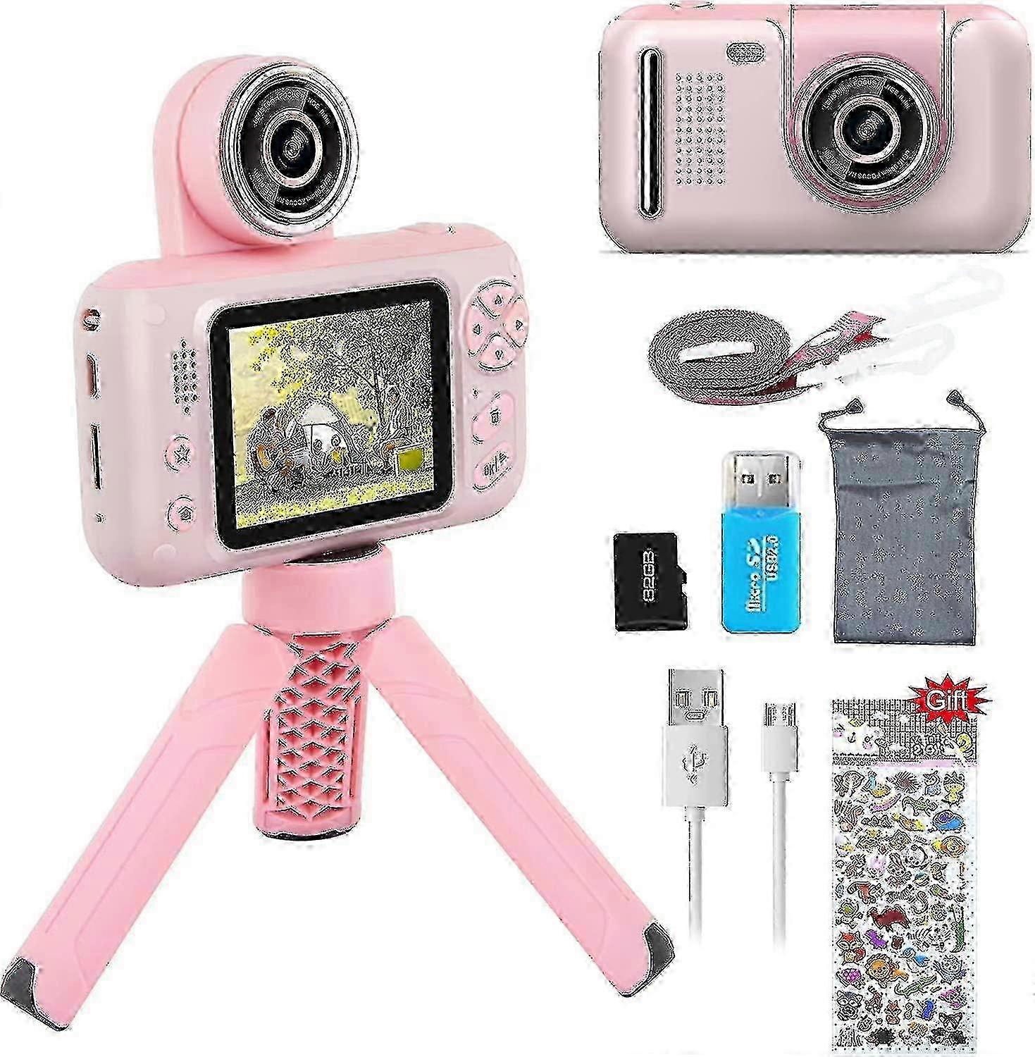 Kids Camera, Kids Camera With Tripod, 180 Rotating Lens, 40mp Photo & 720p Hd Video/2.4 Inch Ips